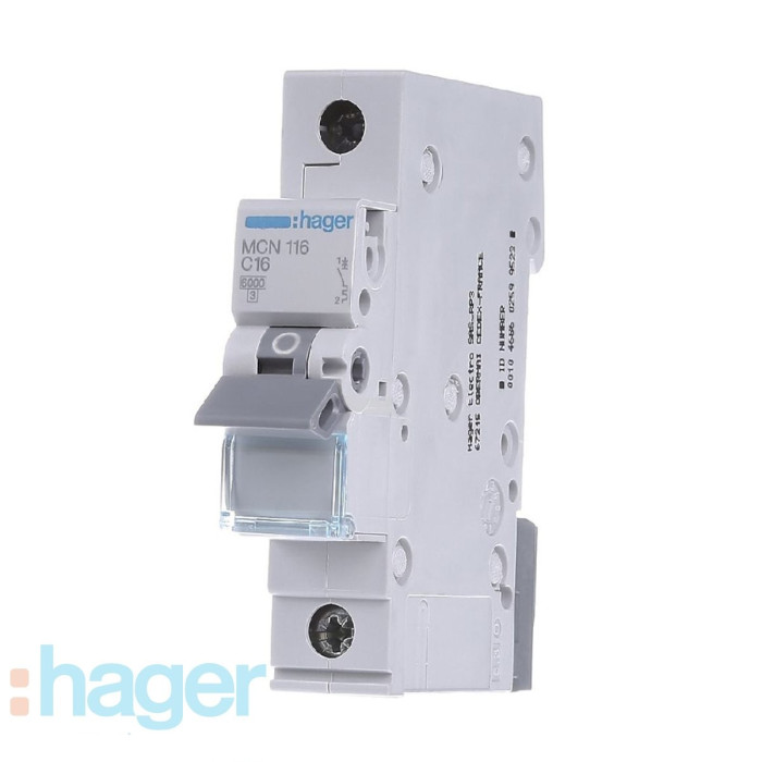 Описание Автоматический выключатель Hager MCN116 In=16А, 1п, С, 6 kA, 1м