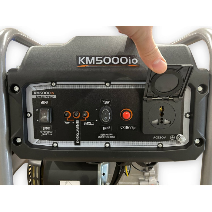 KM5000io имеет мощность 3,5 кВт (продолжительная) и 4,0 кВт (кратковременно), что достаточно для питания домашних приборов, электроинструментов и других устройств. Генератор работает на бензине и имеет емкость топливного бака в 7 литров, что обеспечивает продолжительную работу на одном баке.