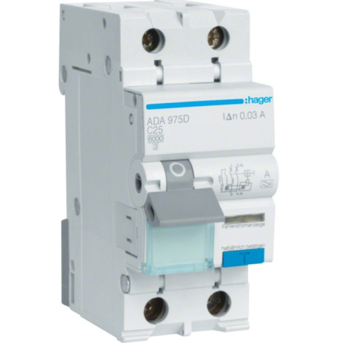 Описание Дифференциальный автоматический выключатель HAGER ADA975D 1P+N 6kA C-25A 30mA A