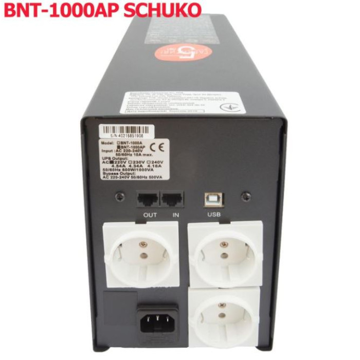 Выходные разъемы | 5 х IEC-320 C13(1шт не резервируемая) или 3 х Euro резервируемых для BNT-1000AP Schuko | |||||