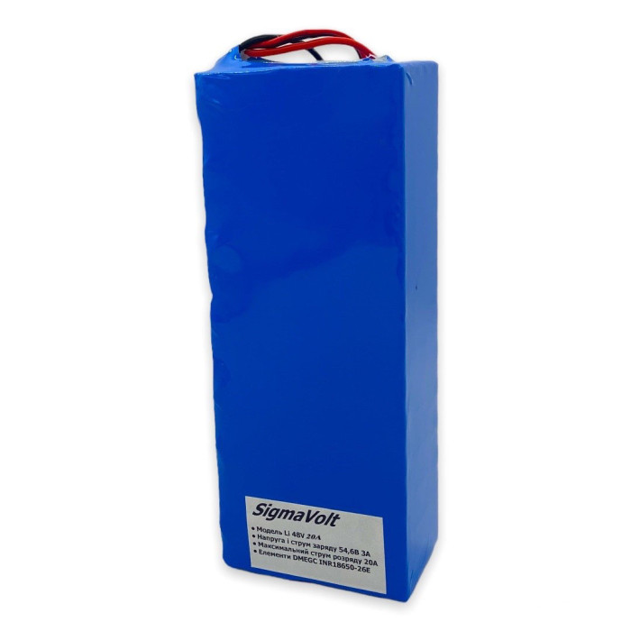 Батарея СигмаВольт Li 48V 13Ah BMS 20A/3A 18650 - это литий-ионная аккумуляторная батарея, которая может использоваться в различных электрических устройствах, включая электрические велосипеды, скутеры и мотоциклы.