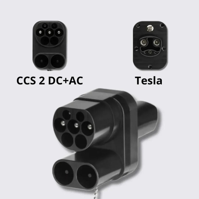 Переходник CCS2–Tesla DC+AC Olink предназначен для зарядки американских электромобилей Tesla Model S, X, 3, Y на европейских станциях переменного тока (AC Type 2) или постоянного тока (Tesla Supercharger, CCS Combo 2). Благодаря встроенной кнопке переходник поддерживает все версии электромобилей Tesla.