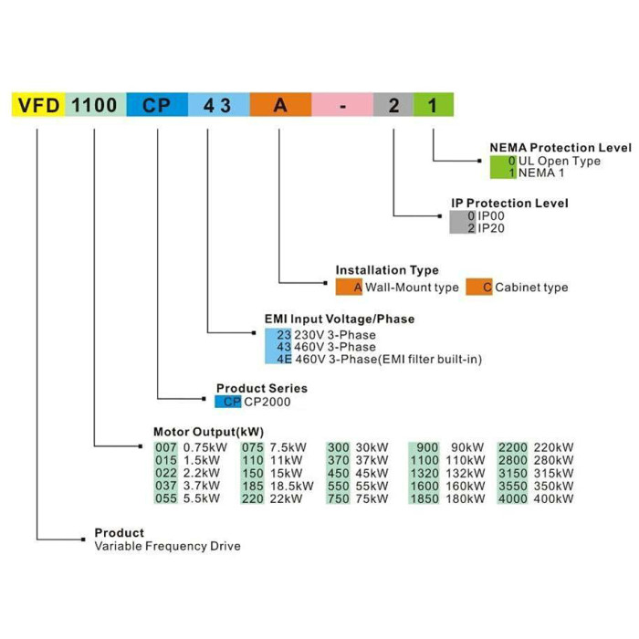 | Технические параметры ПЧ Delta Electronics | VFD022CP43B-21 |