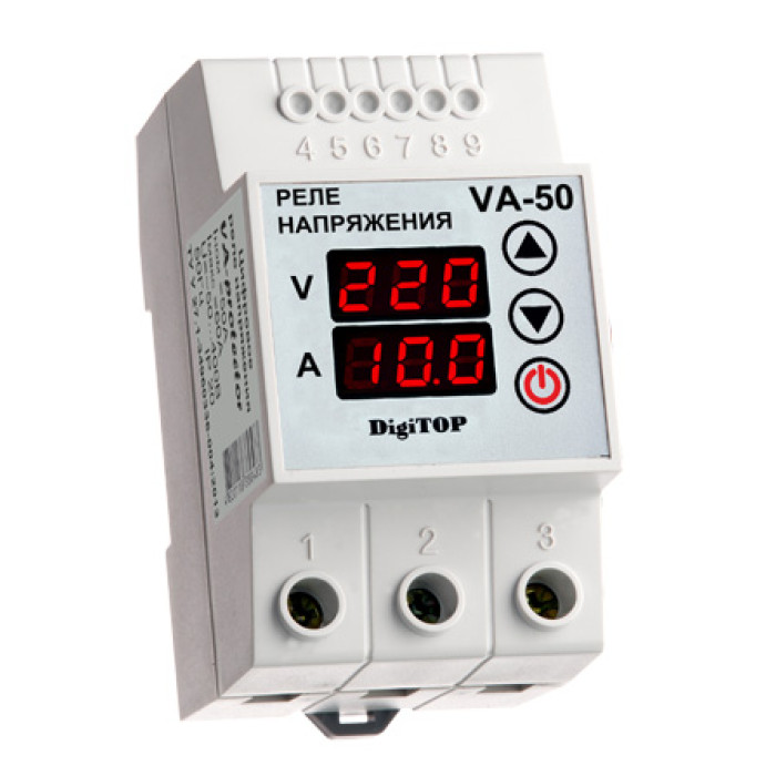 Описание Реле напряжения с индикацией тока нагрузки DIGITOP VА-50