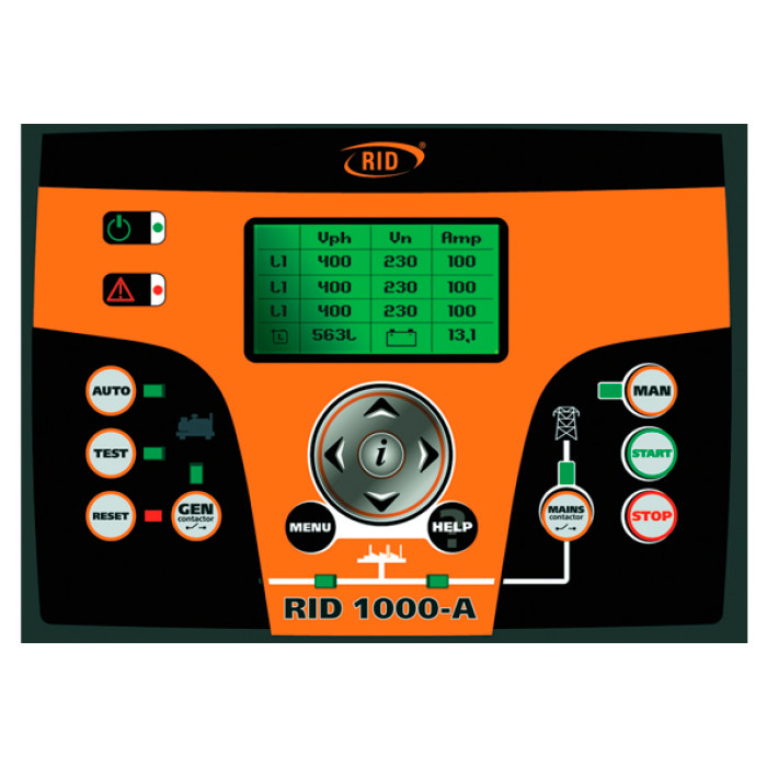 Все модели дизельных электростанций RID обладают повышенным функционалом и имеют: панель управления RID 1000 G/A, систему удаленного мониторинга и управления, а также гибридные системы управления через интернет и мобильные сети GSM/GPRS.