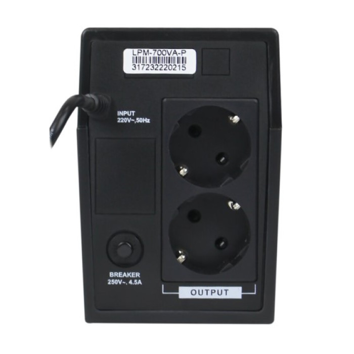 LPM-700VA-P - лінійно-інтерактивний ДБЖ/UPS, призначений для стабілізації напруги в електромережі та забезпечення короткочасної автономної роботи побутової, офісної чи промислової техніки у разі відключення електроенергії.