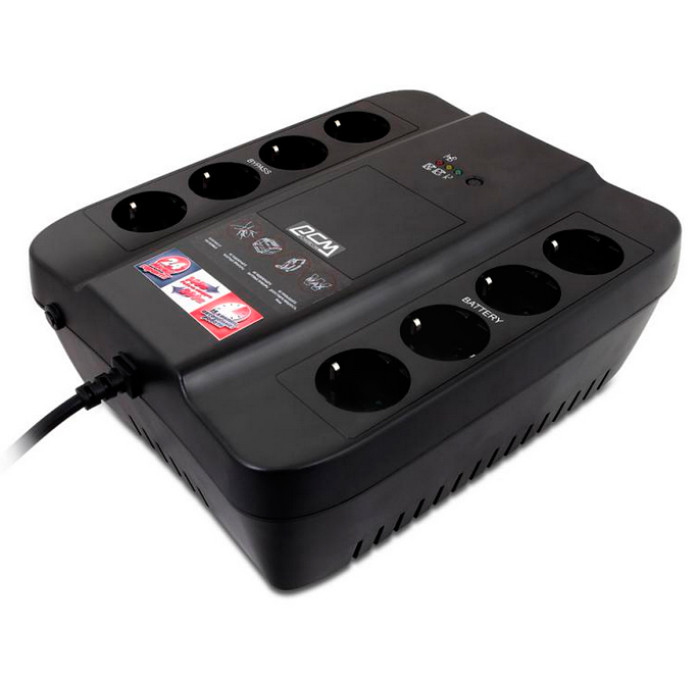 ИБП Powercom серии SPD (Spider) просты и удобны в эксплуатации, имеют самые необходимые функции, в число которых входит "холодный старт", "горячая" аккумуляторных замена батарей, улучшенная защита от пиковых скачков напряжения и короткого замыкания в электросети, защита аккумуляторных батарей от глубокого разряда. ИБП Powercom SPD-650U имеет 8 евророзеток для подключения нагрузки (4 розетки с батарейной поддержкой и 4 розетки с фильтрацией помех) и USB-порт для связи с персональным компьютером.