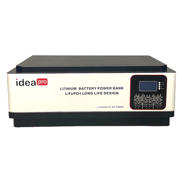 Літієвий акумулятор IdeaPro SK-51.2V 100Ah LiFePo4 являє собою інноваційний пристрій для накопичення енергії з характеристиками 5 кВтг і 48 В постійного струму. Він спроектований для забезпечення надійного електроживлення різних видів обладнання та систем. Цей акумулятор ідеально підходить для використання в умовах високої потужності, обмеженого місця для установки і обмеженого навантаження, і має тривалий термін служби.