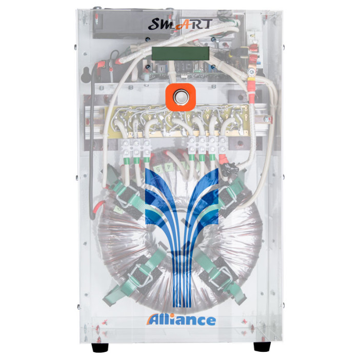 За комутацію щаблів стабілізації відповідають напівпровідникові тиристори. Саме тому прилад називається електронним – у ньому відсутні механічні вузли, чи то реле чи сервомотор в інших типах стабілізаторів. Завдяки повністю електронній реалізації схеми стабілізації стабілізатор ALLIANCE ALS-14 Smart працює швидко і безшумно, а також має вкрай високу надійність, бо ламатися в конструкції просто нема чого.