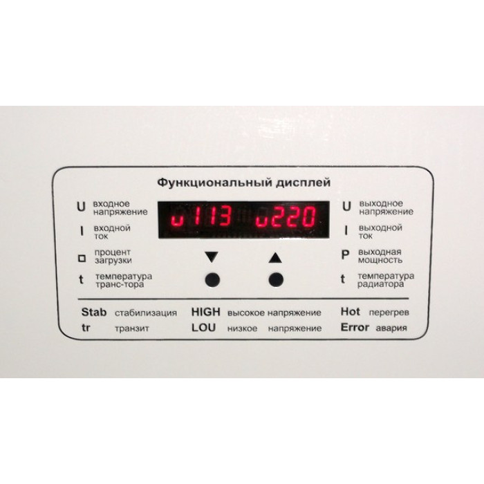 - функціональний дисплей дозволяє проводити контроль більшої кількості параметрів (вхідна та вихідна напруга, вхідний та вихідний струм, відсоток навантаження, потужність на виході, температура охолоджуючого радіатора, температура трансформатора та силових ключів).