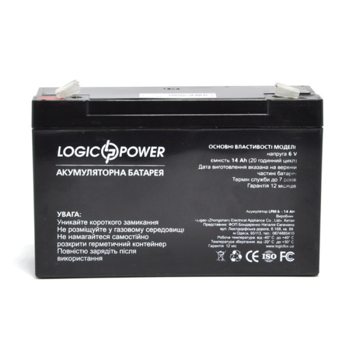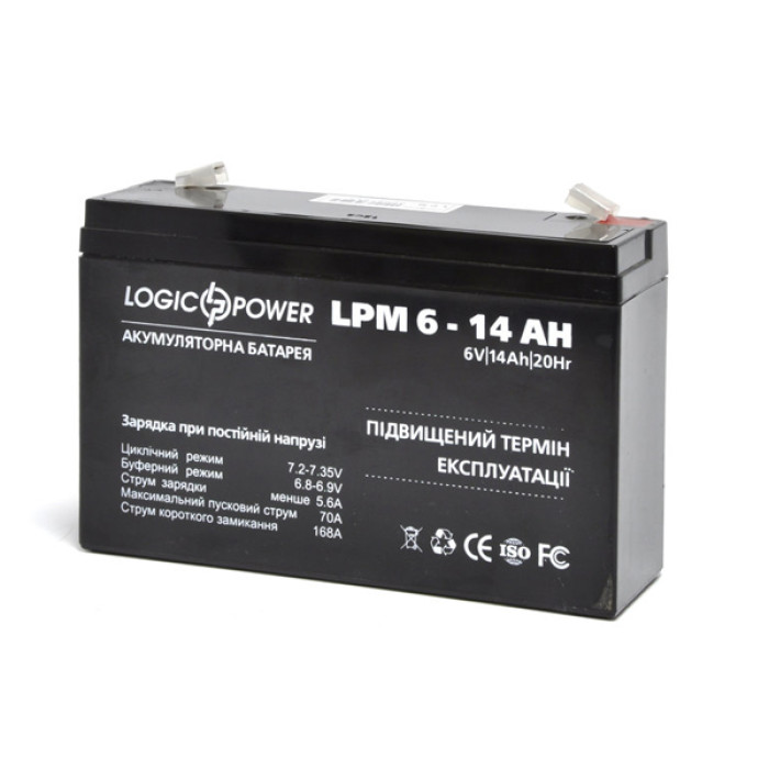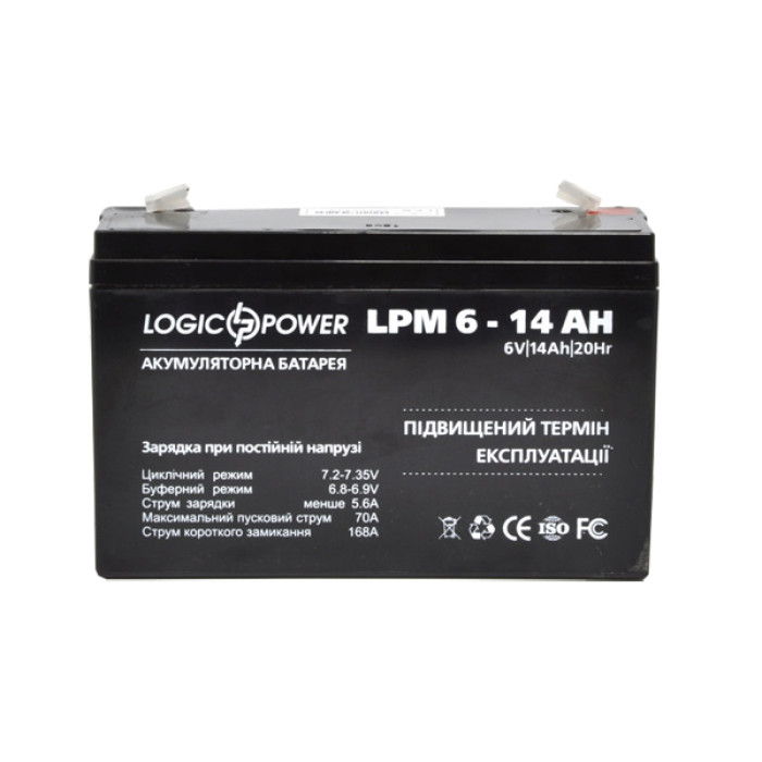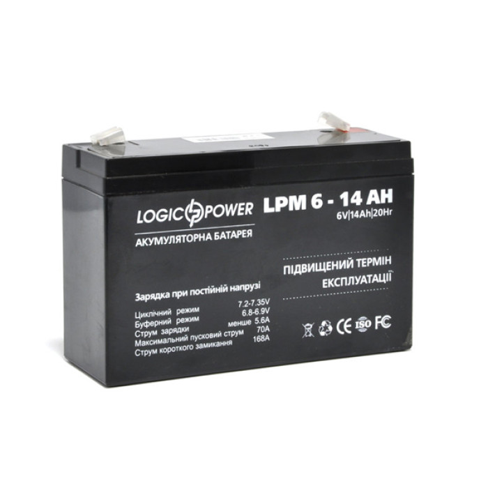 Опис Герметична свинцево-кислотна акумуляторна батарея LogicPower LPM6-14AH